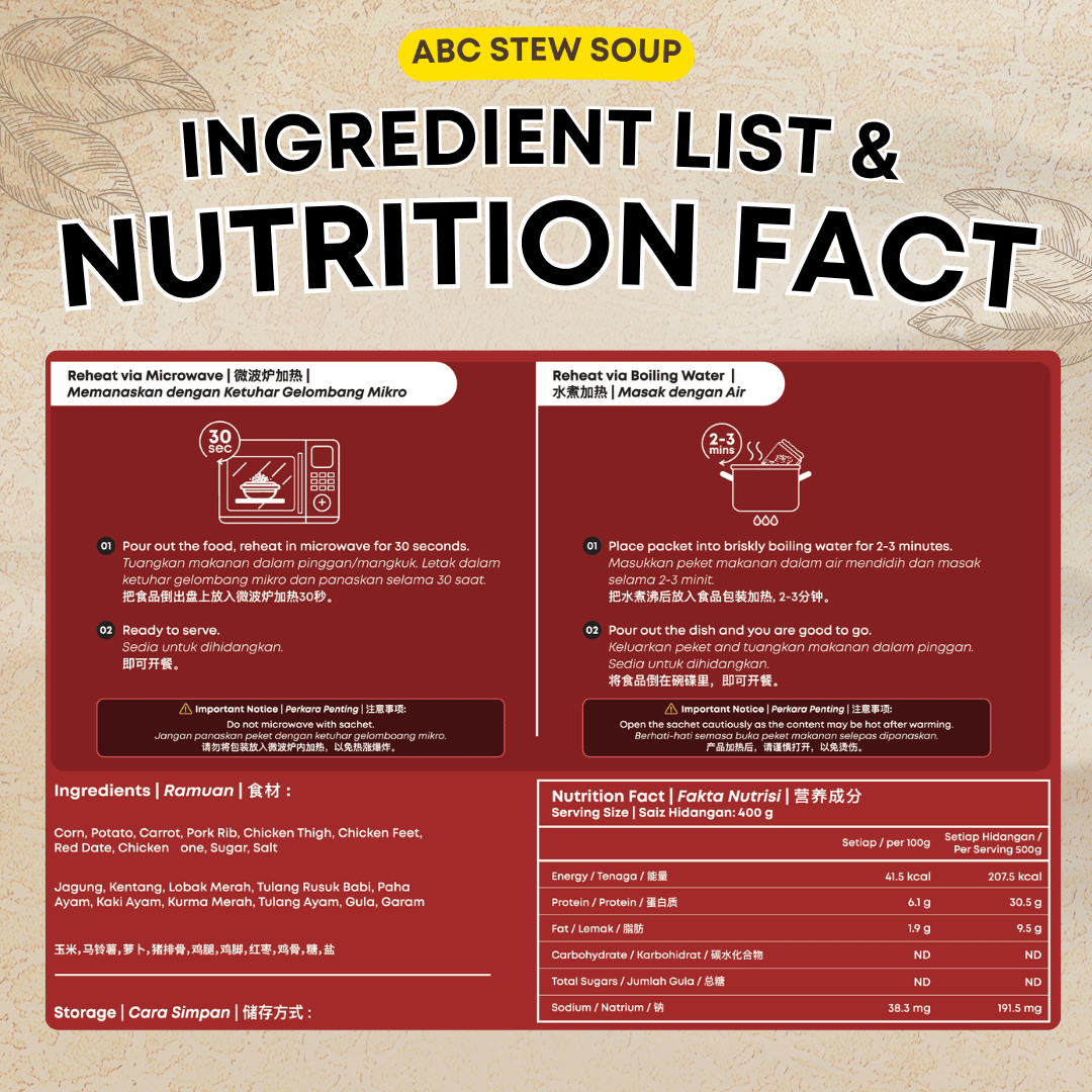 All our food is lab verified with nutrition facts, we only use SGS verified heavy-metal free packaging for as packaging.